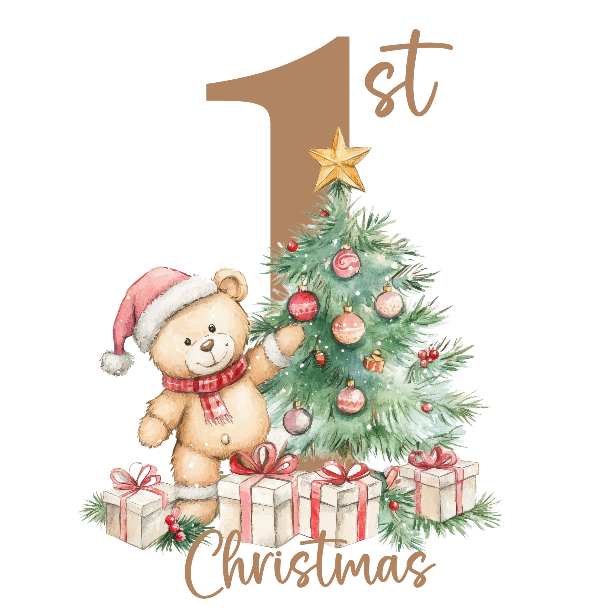 Celebrate baby's first Christmas with this bundle! Featuring a cuddly rabbit teddy, cute bib, and cozy baby grows, all adorned with festive holiday prints. Plus, a keepsake ceramic disc to mark this special milestone. Perfect for capturing those precious memories. (Limited availability - order now!)